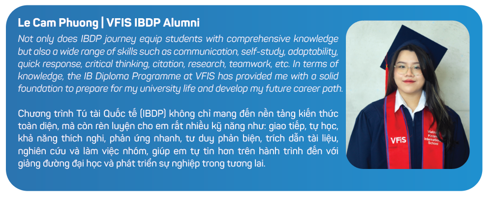 - With modern facilities and flexible learning spaces, VFIS has created an ideal environment for successfully implementing the IB teaching method, encouraging students to learn independently and explore at any time and place.