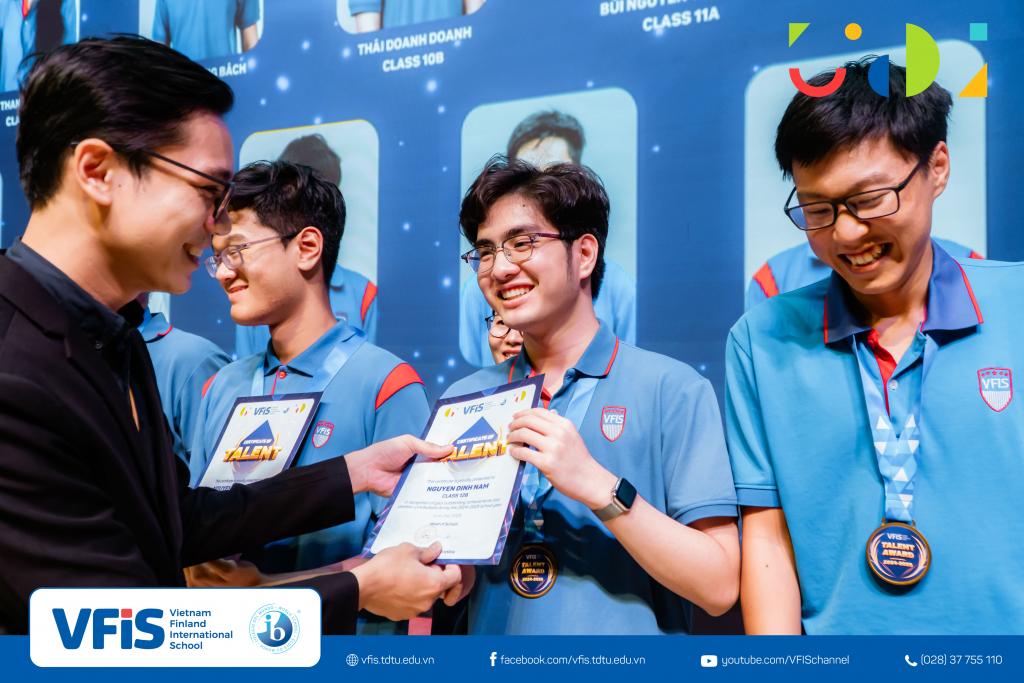VFIS Award là giải thưởng thường niên nhằm ghi nhận và tôn vinh những học sinh có thành tích nổi bật trong nhiều lĩnh vực khác nhau. Năm nay, giải thưởng được trao theo ba hạng mục chính: SISU Award dành cho những học sinh thể hiện tinh thần kiên cường, bền bỉ – đúng với triết lý giáo dục Phần Lan về sự dũng cảm vượt qua thử thách; Innovation Award nhằm ghi nhận những ý tưởng sáng tạo và đóng góp tích cực của học sinh trong việc cải thiện đời cộng đồng VFIS hiện đại, nhân văn và Talent Award vinh danh những cá nhân có năng khiếu nổi bật trong nhiều lĩnh vực học thuật, nghệ thuật, thể thao,…