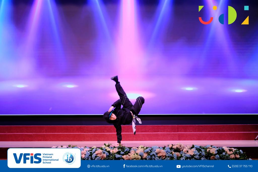 Cũng tại lễ trao giải, chương trình biểu diễn Talent Show do học sinh VFIS biểu diễn đã mang đến nhiều tiết mục đặc sắc, sáng tạo và đầy cảm xúc, thể hiện sức trẻ, đam mê và tinh thần nghệ thuật lan tỏa mạnh mẽ trong cộng đồng học sinh VFIS.